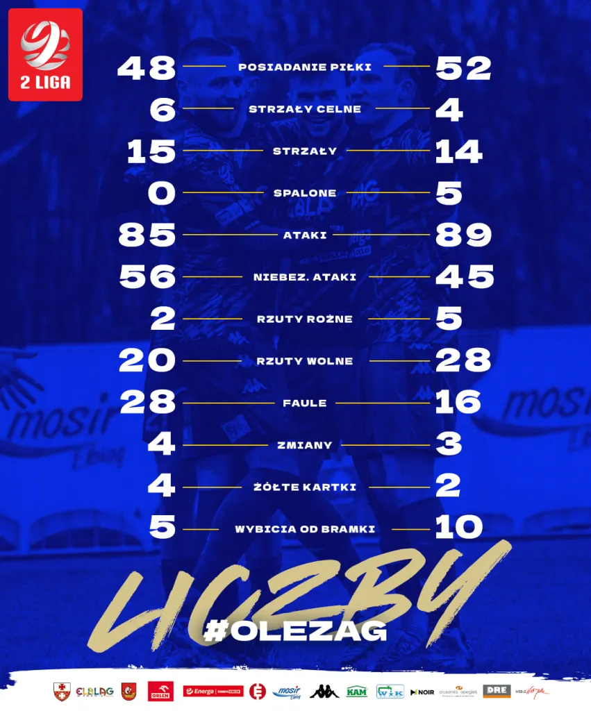Cały anturaż związany z dzisiejszym spotkaniem był wyjątkowo pompatyczny. Mecz napakowany jak kabanos w różnego rodzaju komunikaty i atrakcje. Przed pierwszym gwizdkiem na murawie pojawili się Oldboys Olimpii Elbląg, którzy od 15 lutego 2024 roku dołączyli do oficjalnych struktur klubowych. Jak poinformowali przedstawiciele Oldboyów, głównym celem jest wspólnie uczestnictwo w rozwoju Olimpii i pielęgnacja historii. W niedalekiej przyszłości możemy spodziewać się m.in. meczów pokazowych, ale o szczegółach jeszcze poinformujemy.Potem rozpoczął się pojedynek dwóch zranionych drużyn, w końcu Zagłębie II jeszcze w tym roku nie wygrało. Kto się spóźnił na mecz ten niewiele stracił, bo w pierwszych minutach emocje jak na grzybach. Piłkarze wykorzystali kwadrans studencki i jakieś ożywienie zaobserwowaliśmy po 15 minucie. Optycznie przeważała Olimpia, ale strzałów było jak na lekarstwo, a jeśli już dochodziło do jakiś prób to celność pozostawiała wiele do życzenia. Serca u kibiców Olimpii prędzej mogły zadrzeć przy sytuacji, w której Andrzej Witan postanowił przedryblować atakującego napastnika, zwód na “walizkę” à la Adam Fedoruk, najważniejsze że bez konsekwencji utraty gola. Bramka w pierwszej połowie jednak ostatecznie wpadła, taka z kategorii “stadiony świata”. Pięknie przymierzył Cyprian Popielec z okolic 20 metra. Tuż przed strzałem słyszalny był trener Gomułka, który podpowiadał swoim zawodnikom, aby ktoś wyskoczył, aby ktoś zablokował, ale nikt nie posłuchał.Mimo niekorzystnego wyniku przerwa minęła w atmosferze przyjaznej. Wśród posiadaczy karnetów rozlosowano pamiątkowe koszulki, na murawie odbył się konkurs rzutów karnych. Kontynuacja “jedenastek” miała miejsce na początku drugiej połowy. Po pięciu minutach od wznowienia Kacper Filipczyk dośrodkował w pole karne, piłkę wypiąstkował Szymon Wejrauch w okolice linii szesnastego metra, którą zamierzał kopnąć Dawid Danilczyk, ale został pchnięty w plecy i decyzja mogła być jedna: “wapno”. Piłkę ustawił Adam Żak i strzelił tak samo pewnie jak zwycięzca konkursu w przerwie meczu, nota bene ojciec Patrycji Tracz, zawodniczki Olimpii Elbląg.Po wyrównaniu chciało się wierzyć, że żółto-biało-niebiescy pójdą za ciosem i wygrają mecz. Próbował Filipczyk zza pola karnego, później głową zgrywał do Kuczałka, który również głową próbował strzelić na 2:1. Zagłębie II też miało swoje szanse, zresztą bardzo groźne. Sam na sam nie wykorzystał Paweł Kruszelnicki, który lekką podcinką chciał pokonać Witana i prawie się udało, ale na przeszkodzie stanął słupek.Zapewne u większości kibiców coraz mocniej rozwijała się myśl, że mecz zakończy się remisem, ale wprowadzony w drugiej połowie Mateusz Kizyma postanowił równie pięknie strzelić co jego klubowy kolega. Można się spierać czy pierwsza, czy druga bramka Zagłębia II była piękniejsza, ale może lepiej skupić się na obecnej sytuacji Olimpii, która jest coraz trudniejsza. Przewaga nad strefą spadkową topnieje i niestety narracja o barażach staje się mało poważna, widmo walki o utrzymanie wychodzi przed szereg. Czarnowidztwo nie jest wskazane, ale wobec formy wyjazdowej, a w najbliższym czasie Olimpię czekają kolejne trzy mecze poza domem, zmartwienia same się pojawiają. Żółto-biało-niebiescy są w kryzysie, o czym mówił trener Gomułka na pomeczowej konferencji, miejmy nadzieję że kryzys zostanie jednak pokonany. Olimpia Elbląg - Zagłębie II Lubin 1:2 (0:1)0:1 - Cyprian Popielec (45. min.), 1:1 - Adam Żak (51. min., karny), 1:2 - Mateusz Kizyma (90. min ) Olimpia: Witan - Bartoś (83’ Stefaniak), Sarnowski, Szczudliński, Filipczyk, Sangowski (74’ Jacenko), Danilczyk (65’ Jóźwicki), Kuczałek, Spychała, Famulak (74’ Gabrych), Żak
